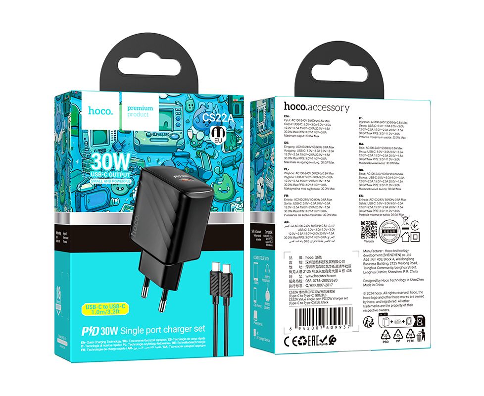 СЗУ HOCO CS22A Value single port PD30W charger set(Type-C to Type-C) black