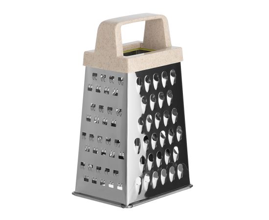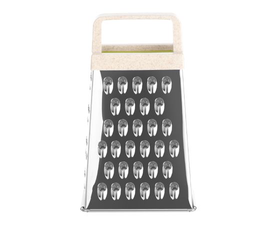 Удобная многофункциональная терка LARA поможет покрошить яйцо, дольку шоколада, орех, имбирь или снять кожуру мандарина. Для надежности использовали сталь повышенной жесткости 0,3 мм. Отделочный материал терки содержит рисовую шелуху. Приобретая данное изделие, вы вносите вклад в снижение потребления пластика.