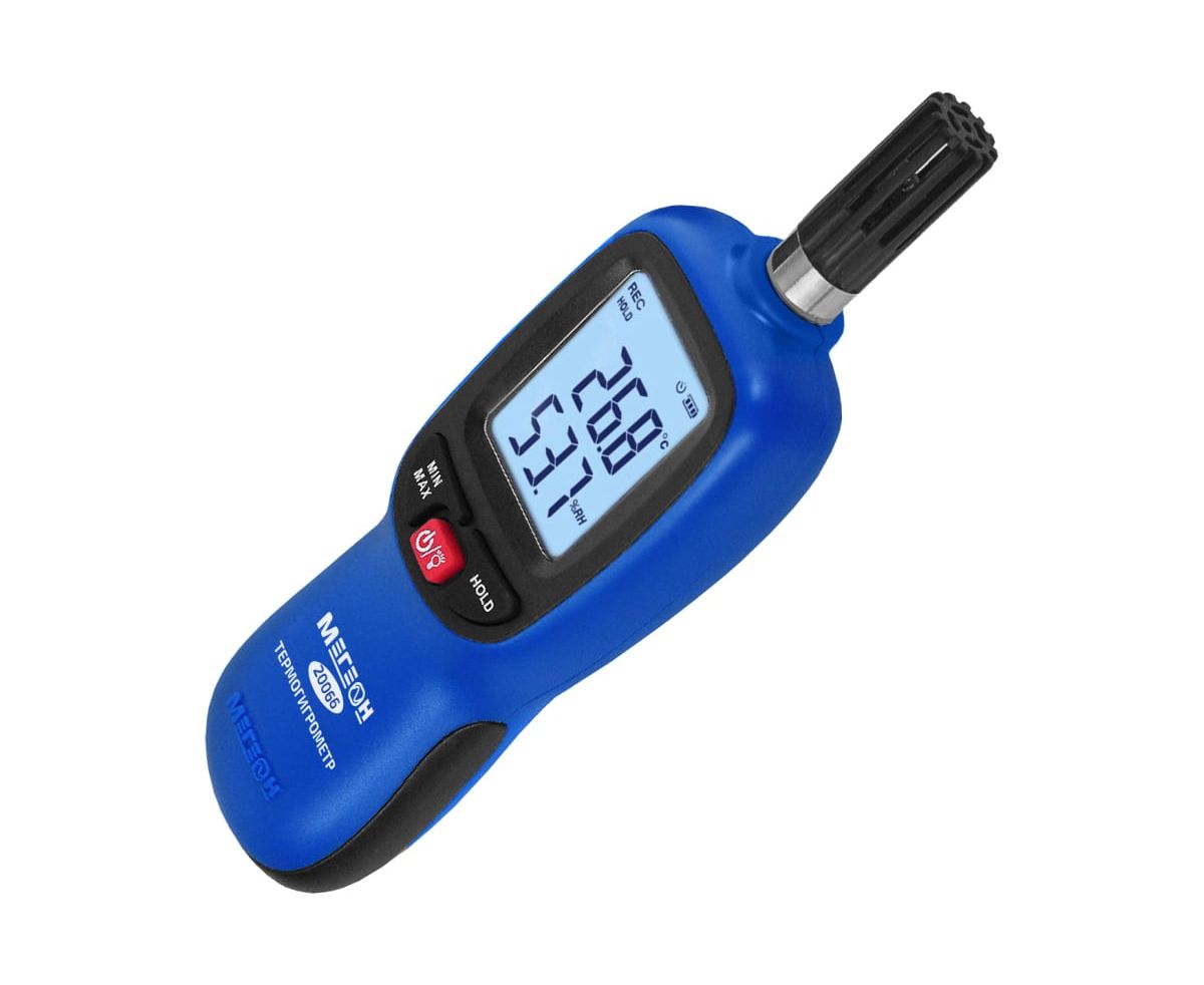 МЕГЕОН 20066 – новинка в модельном ряду цифровых высокочувствительных термогигрометров. Представленный прибор внесен в ГРСИ по номером 89786-23 и предназначен для быстрого определения параметров температуры и влажности с высокой точностью в помещениях и на открытом пространстве. Помимо этого с его помощью можно зафиксировать максимальные и минимальные значения измеренных данных. Преимуществом также является функция записи результатов в память емкостью 999 ячеек. Измеритель получил современный дизайн и компактные размеры. Модель имеет эргономичную форму корпуса, удобное расположение органов управления на передней панели и большой ЖК- дисплей с яркой светодиодной подсветкой. На заднее стенке предусмотрено монтажное отверстие для установки на штатив, благодаря чему достигается максимальное удобство при эксплуатации.