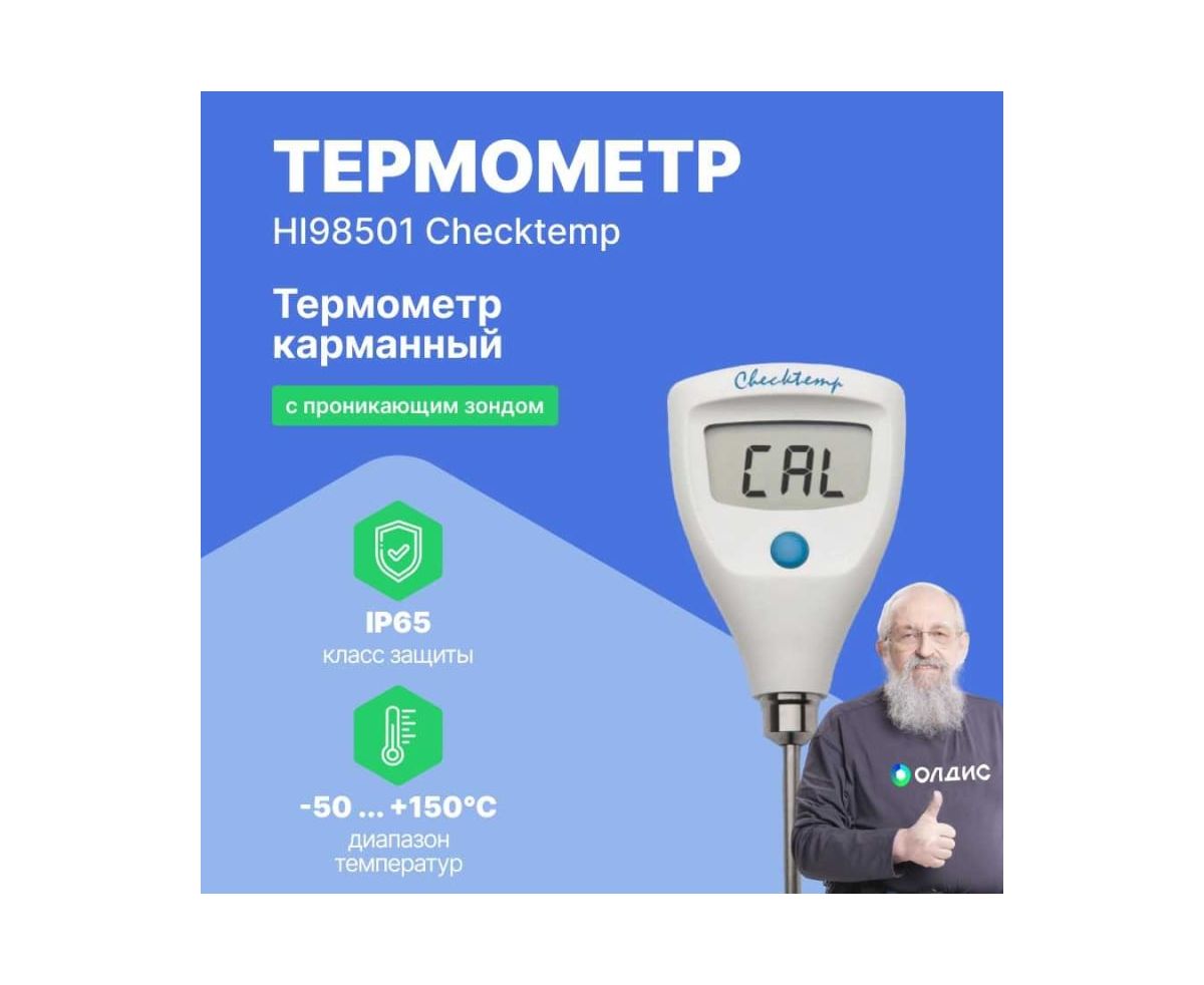 Карманный термометр HANNA instruments HI98501 Checktemp HI 98501 позволяет измерять температуру сыпучей, твердой, жидкой и газообразной среды.