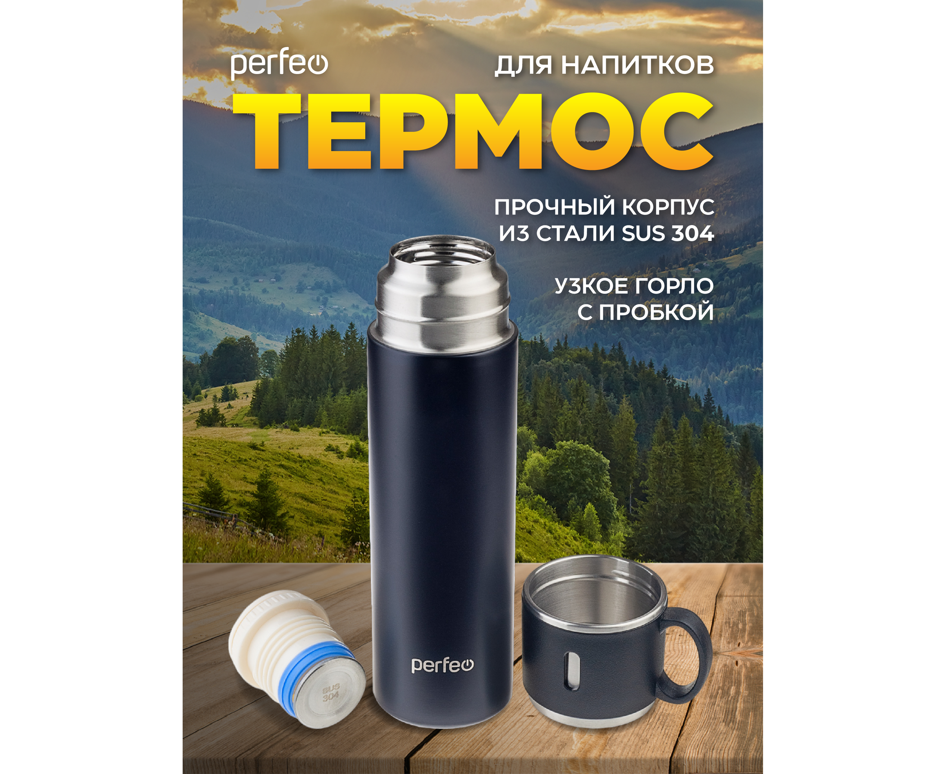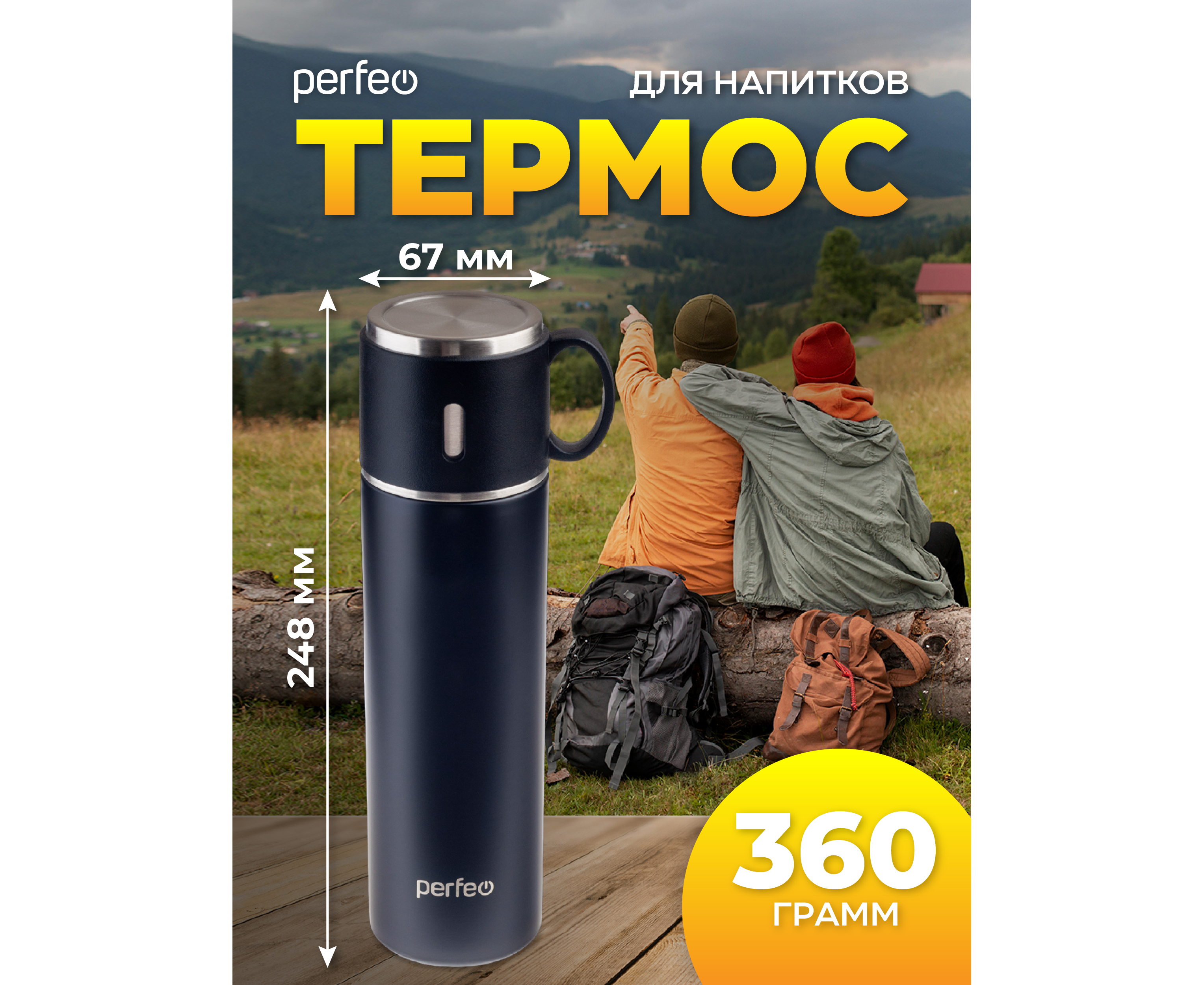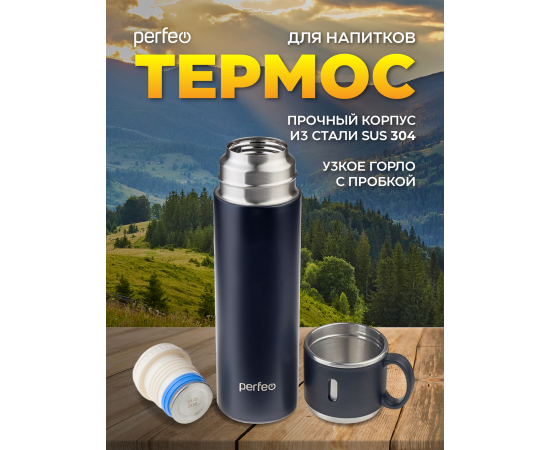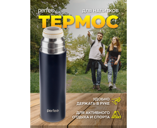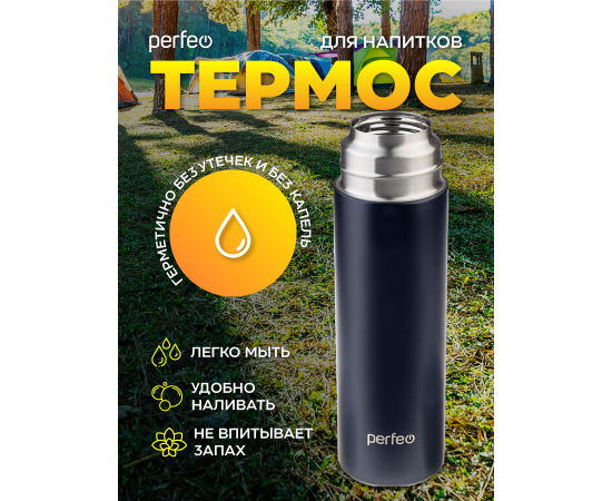 Термос для напитков PERFEO с пробкой-кнопкой, крышкой-кружкой, объем 0,5 л., черный (PF_D0212)