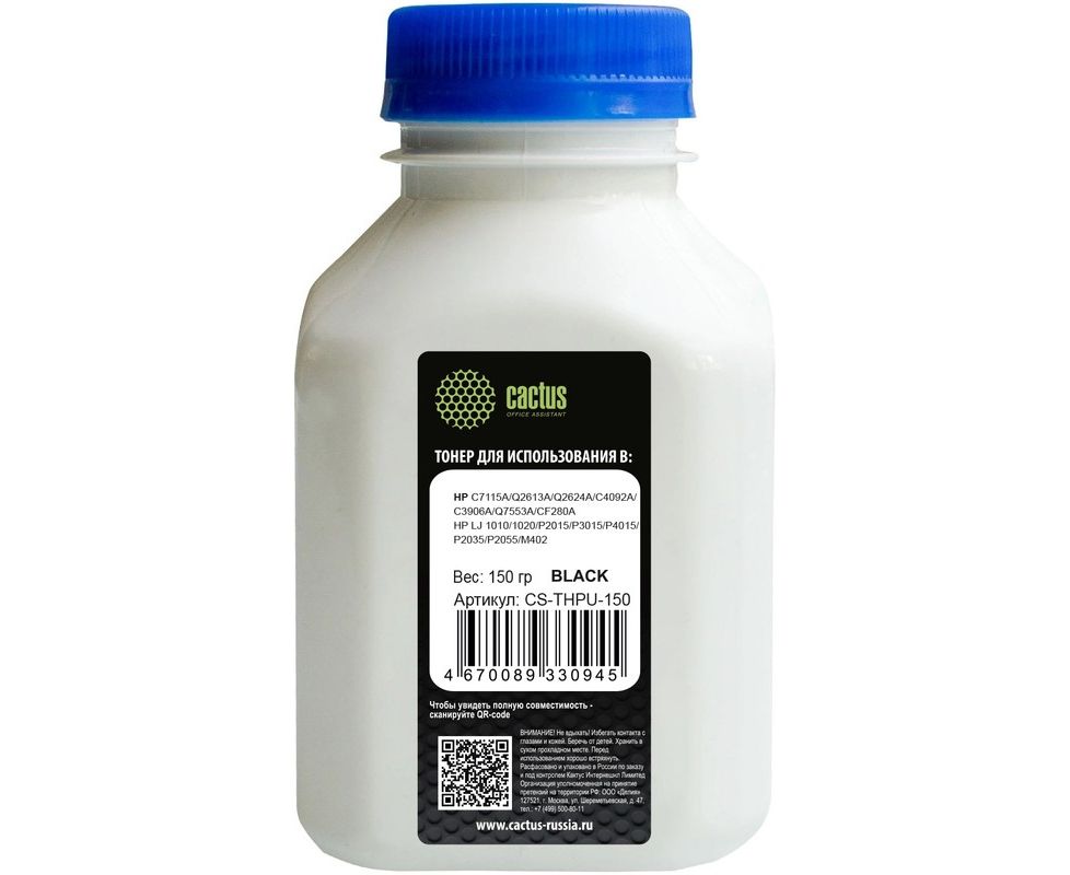 Тонер Cactus CS-THPU-150 черный флакон 150гр для принтера HP Universal Q2612A/Q5949A/CE505A/7115/Q6511/7516/Q4092