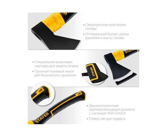 Топор STAYER Fiberglass (2062-06P z02) кованый, с чехлом