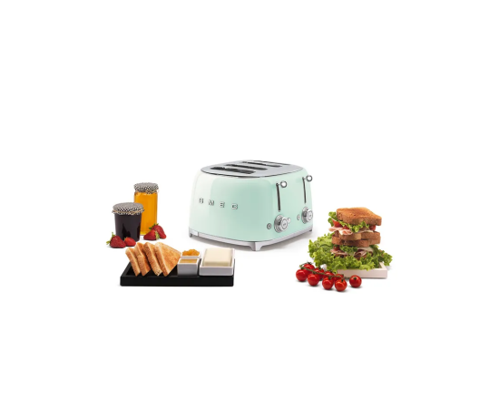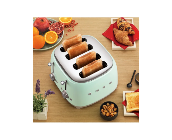 Тостер SMEG TSF03PGEU на 4 ломтика Функции, подогрев, размораживание, багель, 6 уровней поджаривания, пастельный зеленый