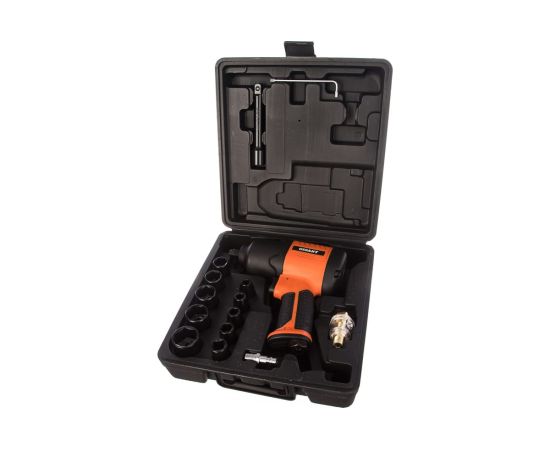 Ударный пневмогайковерт Gigant PW 720 + набор головок подходит для закручивания/откручивания гаек и болтов. Оснащен ударным механизмом Twin Hammer, который помогает справиться даже с приржавевшим крепежом.
