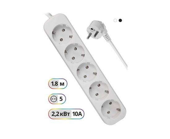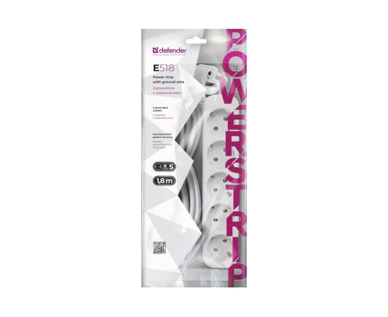 Удлинитель Defender E518 (99229) 1.8 м, 5 розеток, белый