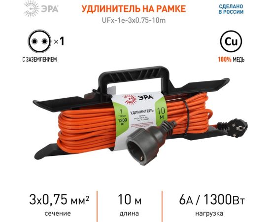 Удлинитель ЭРА UFx-1е-3x0.75-10m-IP44 (Б0046825) 1 розетка 10м 6А