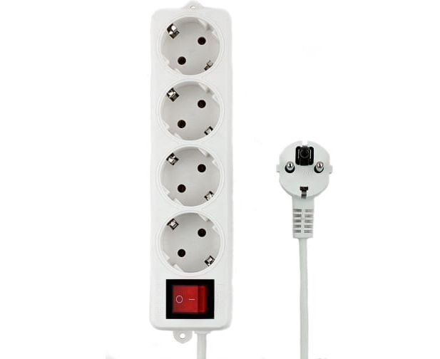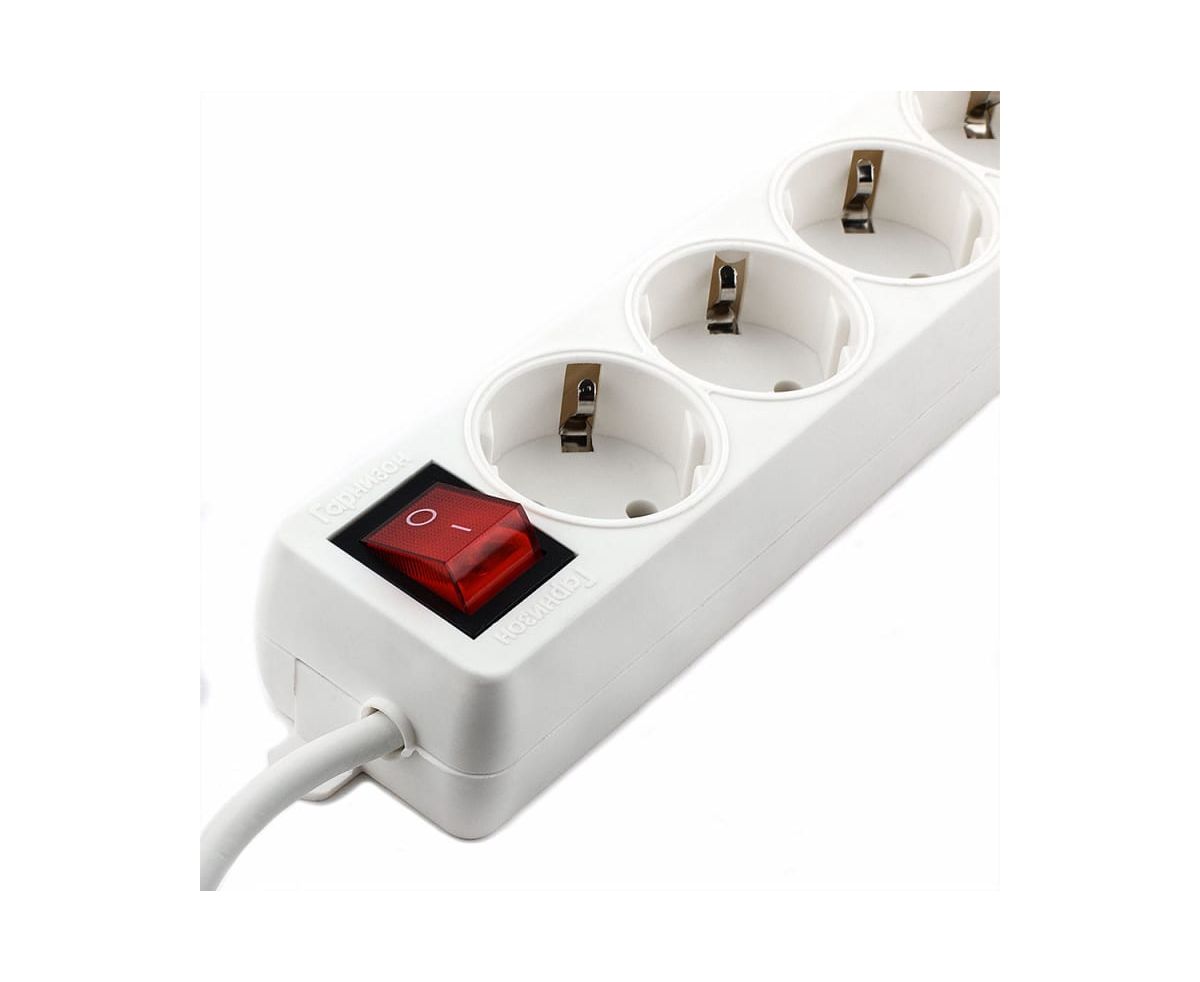 Удлинитель Гарнизон ELB-G4-W-3, 4 евророзетки с выключателем и заземлением, допустимый ток 16А, длина 3м
