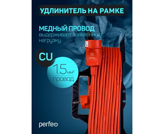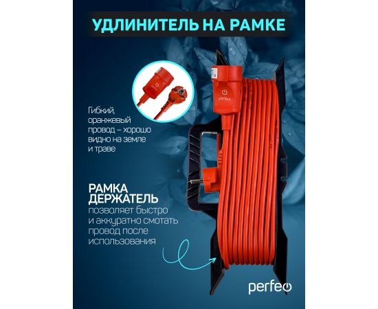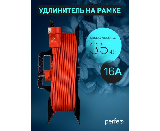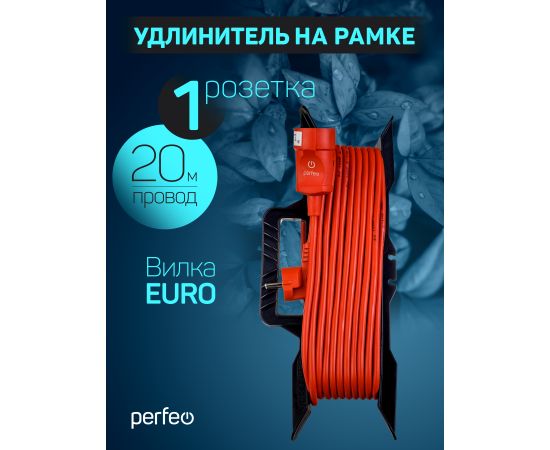 Удлинитель на рамке с заземлением Perfeo " "RU POWER" 20м 1гн 16А ПВС 3х1,5 ( УХз16-101) оранжевый.