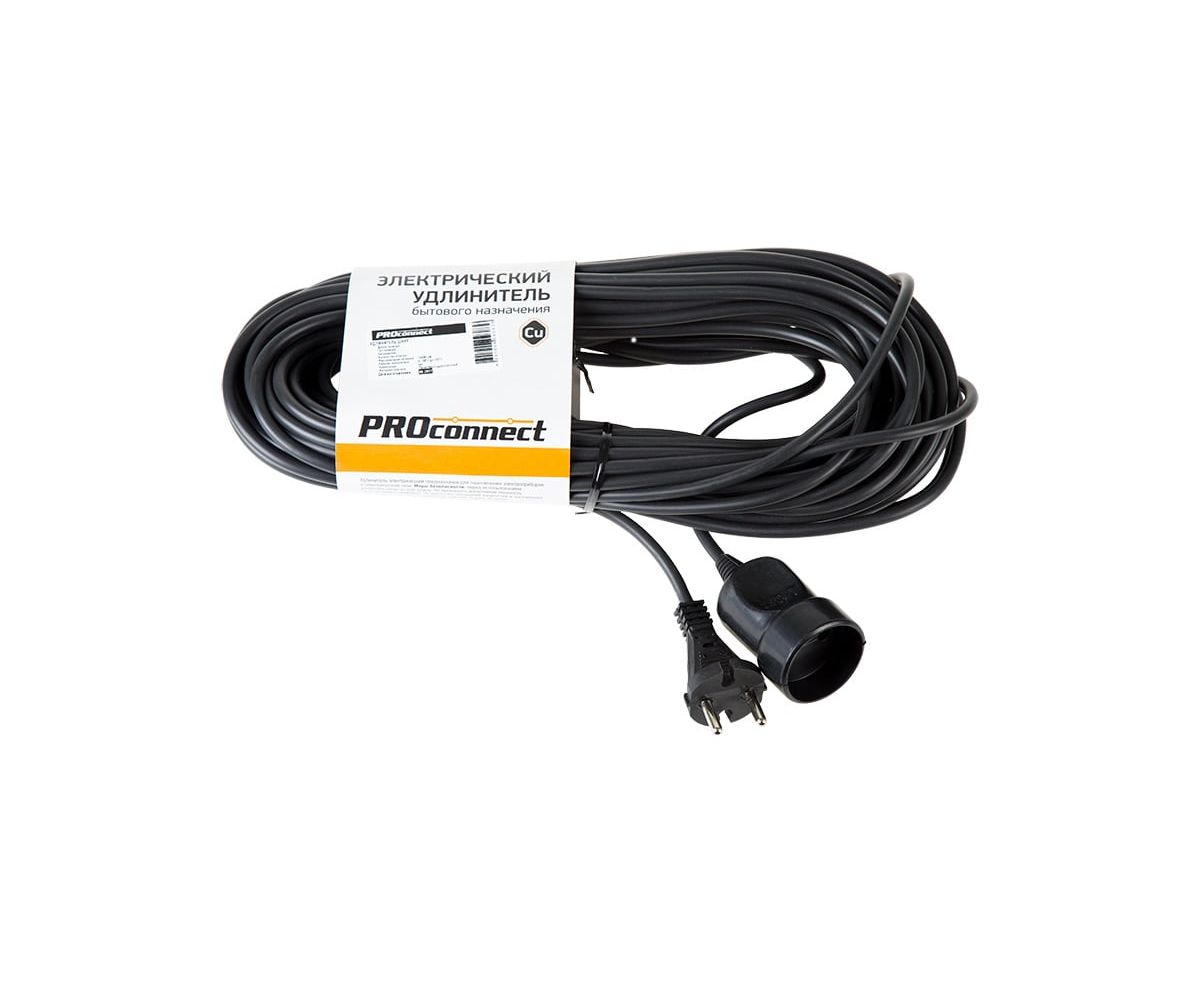 Удлинитель силовой PROconnect PROc-Uc 11-7115 2x0.75кв.мм 1розет. 20м ПВС 6A без катушки черный