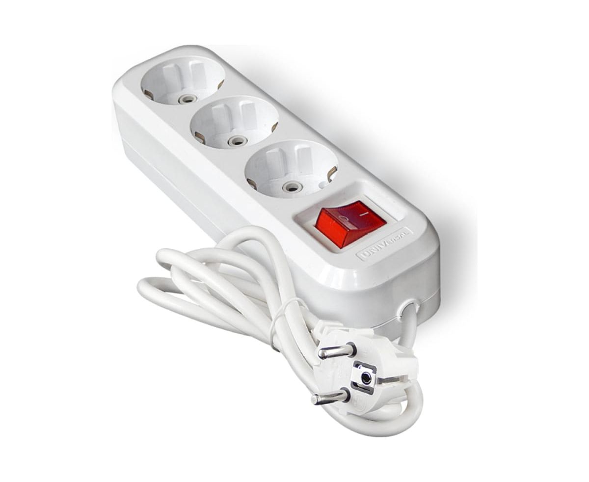Удлинитель UNIVersal 1726 S-303а ПВС 3/1,5 3гнезда с заземлением, с выключателем, 3м, еврослот