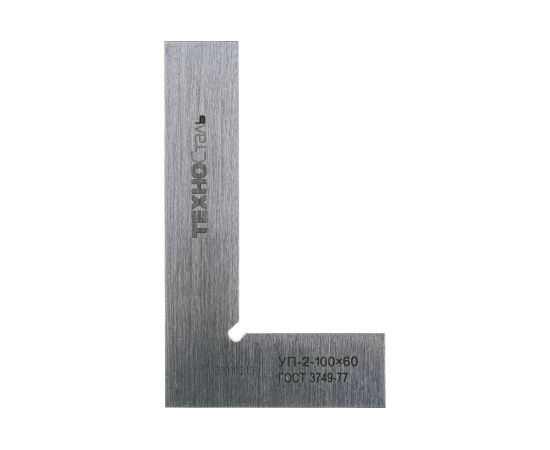 Угольник 100х60 ГОСТ 3749-77 Техносталь УП-2-100 F146003 предназначен для проверки прямых углов и применяется для контроля перпендикулярного расположения деталей с высокой точностью. Имеет заостренные измерительные поверхности и плоские опорные поверхности. Угольник изготовлен из прочной инструментальной стали.