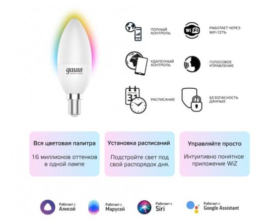 Умная лампа Gauss IoT Smart Home (1190112) E14 5Вт 470lm Wi-Fi