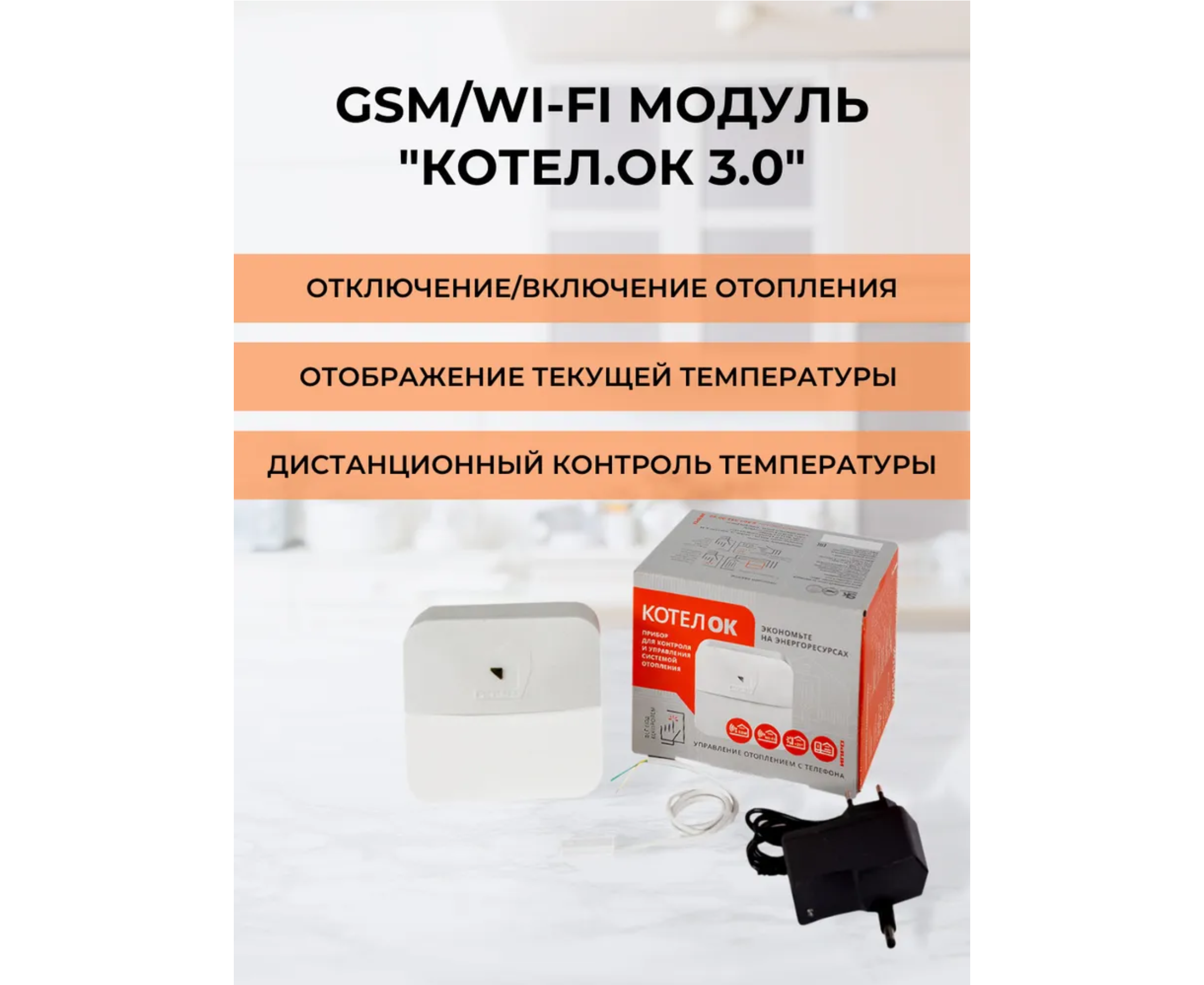Прибор для контроля за температурой «Котел.ОК 3.0», который позволяет легко и эффективно управлять температурой в помещение. Управлять прибором вы можете с помощью звонка, sms или мобильного приложения IproConnect находясь далеко от дома.