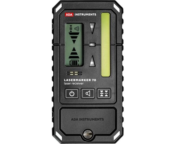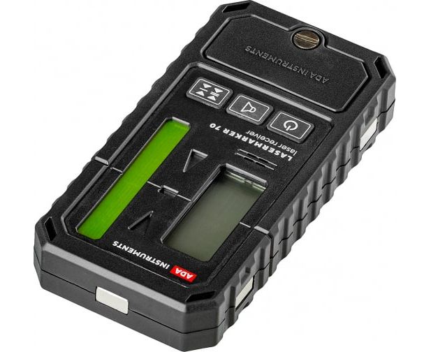Приемник ADA LASERMARKER 70 распознает лазерные лучи зеленого и красного цвета. Большая (7 см) зона приемного элемента способствует быстро и уверенно обнаруживать положение лазерного луча.