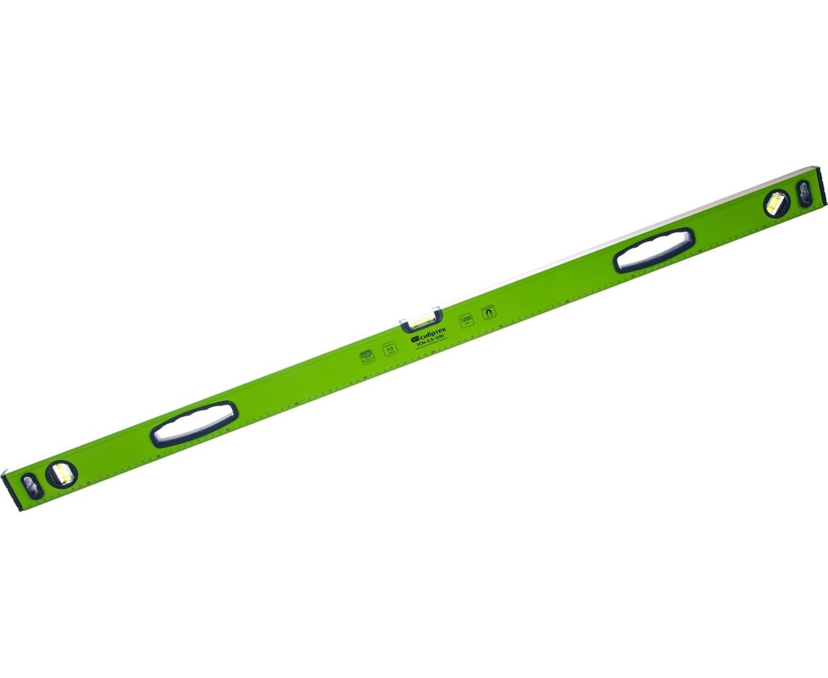 Алюминиевый магнитный уровень Сибртех УСМ-0,5-1200 34118 длиной 1200 мм, фрезерованный, с рукоятками и 3 глазками, позволяет оценить ровность поверхностей и измерить отклонения относительно угла 45 градусов. Широко используется мастерами на строительных площадках при облицовке и отделке помещений, монтаже конструкций.Для определения отклонения вертикали 90 градусов необходимо использовать пузырьковую ампулу только в верхнем положении уровня. Только базовая поверхность является рабочей (противоположная ампуле 180 градусов).