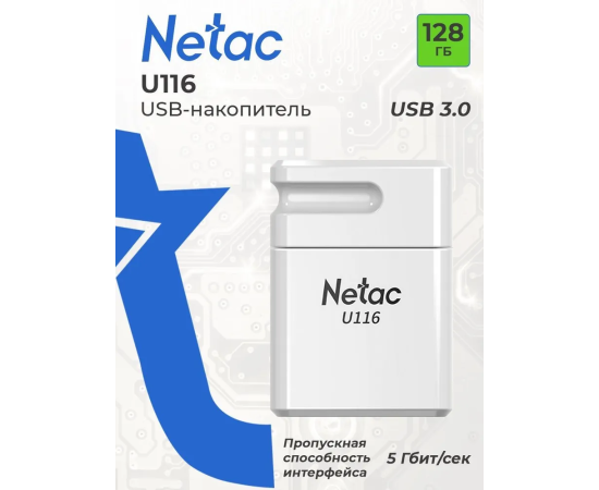 USB 3.0 64GB Netac U116 mini белый (130 MB/s)
