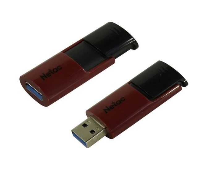 USB-флешка Netac U182 Red (NT03U182N-064G-32RE), 64Gb USB3.2, сдвижной корпус, пластиковая чёрно-красная