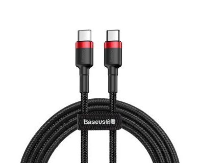 USB-кабель Baseus CATKLF-G91, Type-C-Type-C, ткань, 1.0 м, круглый, поддержка PD, черно-красный