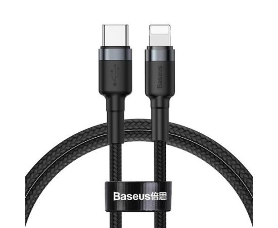 USB-кабель Baseus CATLKLF-G1, Type-C - Apple 8 pin, 20W, ткань, 1.0 м, круглый, мет. разъем, черный