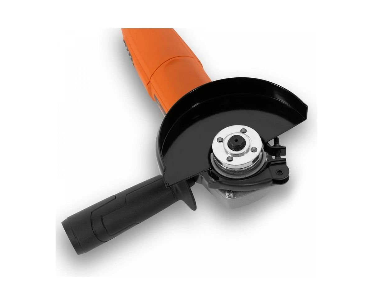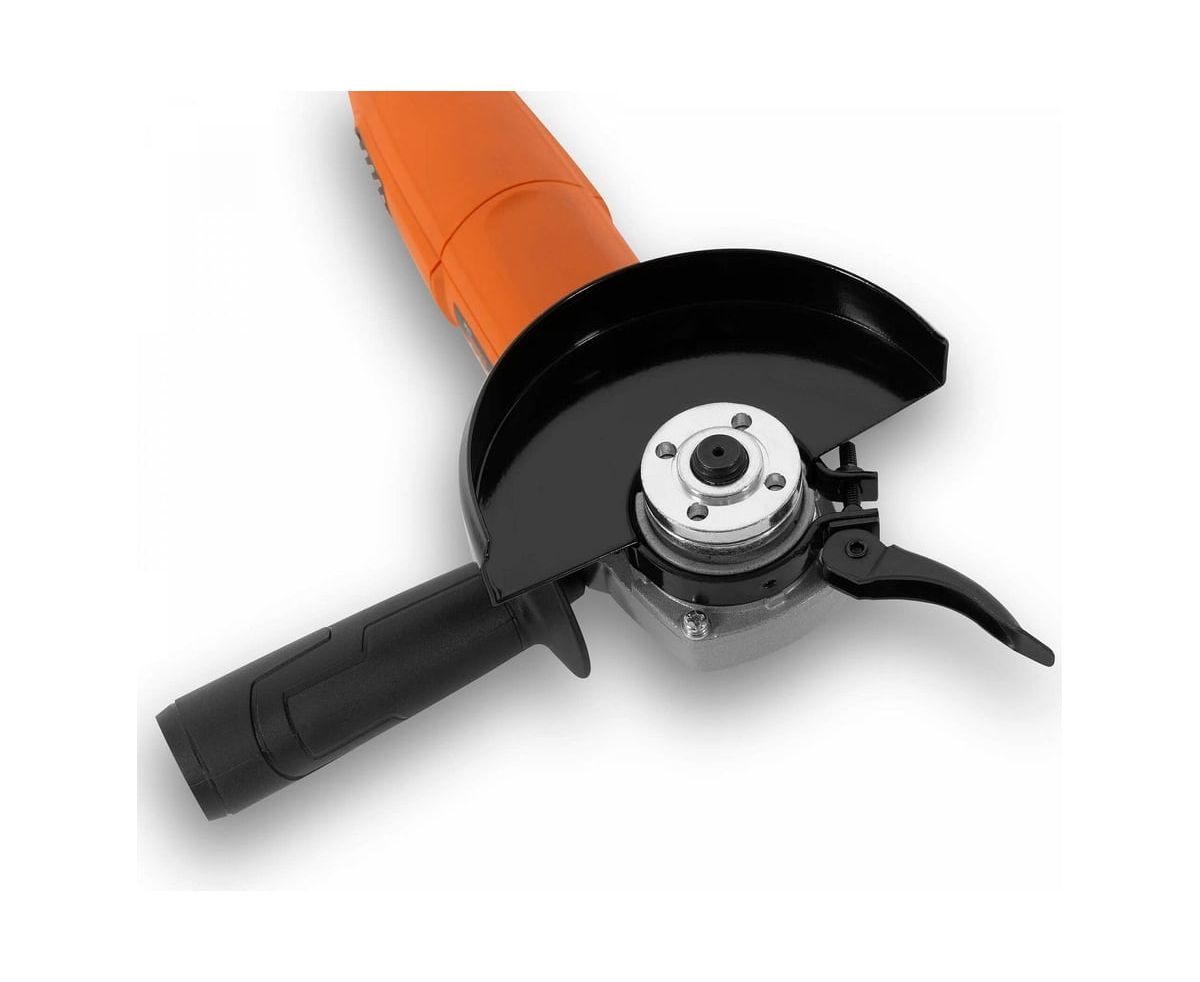 Углошлифовальная машина DAEWOO DAG 850-125 используется для шлифования, резания и зачистки изделий из металла и прочих материалов. Основная рукоятка имеет резиновые вставки, что способствует надежному удержанию инструмента. Дополнительная рукоятка может устанавливаться слева, справа или сверху. Кожух защищает пользователя от попадания искр и продуктов резки.