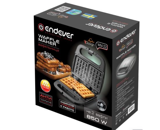 Вафельница электрическая Endever Skyline WM-22, черный, мощность 850 Вт, на 2 вафли, автом. терморег