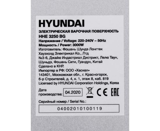 Варочная поверхность Hyundai HHE 3250 BG черный