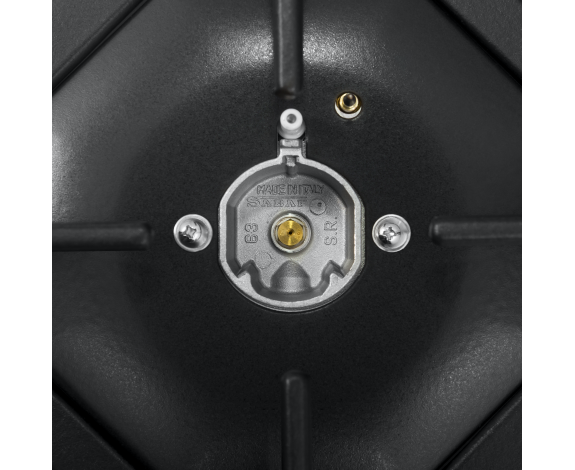 Чугунные решетки, газ-контроль, электроподжиг автоматический, тяжелые цельнометаллические полнотелые ручки управления, итальянские горелки «SABAF», жиклеры Sourdillion (Франция), толщина стекла 8 мм., возможность работы от магистрального газа и газа в баллоне (тип G30).