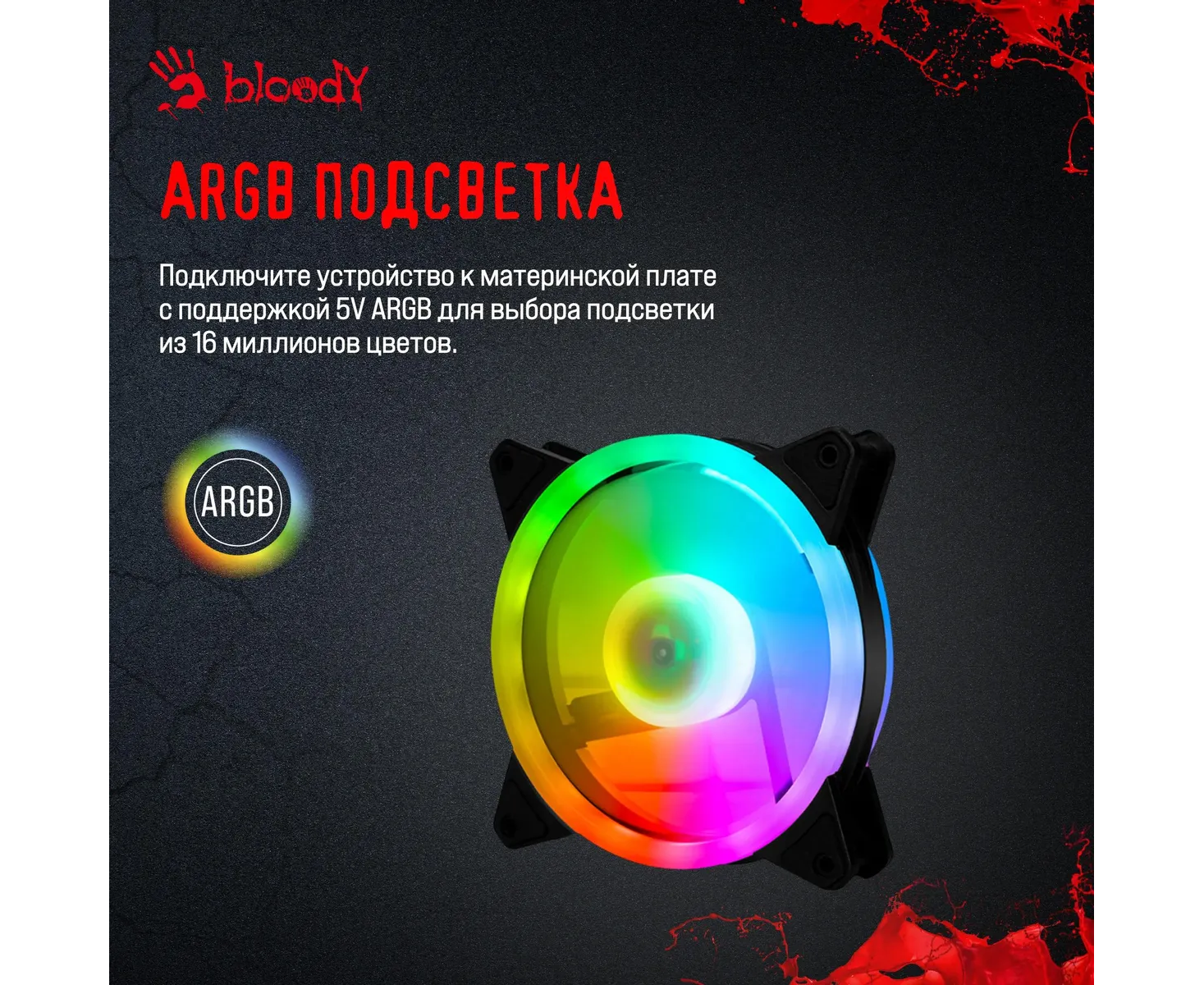 Вентилятор Bloody BD-CF120ARGB4 ARGB (BD-CF120ARGB4-BK) 120х120x25 черный 4-pin 26дБ (упак. 1шт) Ret