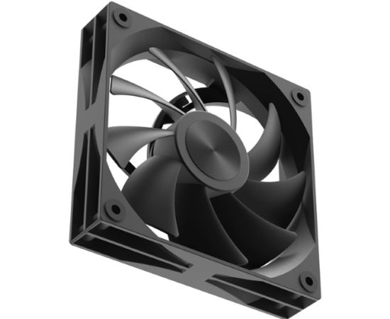 Аэродинамика построена вокруг ротора с 9 лопастями. Профиль лопастей формирует плотный направленный поток, что повышает эффективность на фильтрах и радиаторах. На максимальных оборотах вентилятор прокачивает до 60 cfm и развивает статическое давление до 2.13 мм H₂O — показатели, достаточные для продува плотных сот башенных кулеров или секций СВО, а также для активного забора воздуха через перфорированные фасады. На минимуме поток около 25 cfm поддерживает тихий фоновый обдув. Уровень шума держится ниже 35 дБ, поэтому система остается комфортной даже при длительной нагрузке.
