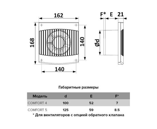 Модель оснащена автоматическим обратным клапаном, который препятствует проникновению запахов и влаги из вентиляционного канала.