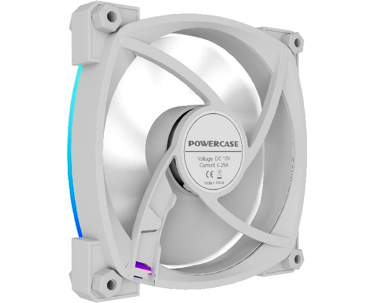 Вентилятор Powercase (M55-12W ARGB) White 120x120x25мм (PWM, 4pin PWM (M+F)+ 3pin ARGB (M+F), 600-1800 об/мин) Bulk