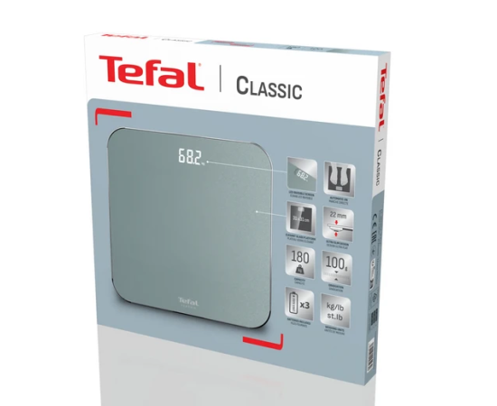 Напольные весы Tefal PP1903V0 Classic серебристого цвета рассчитаны на нагрузку до 180 кг. Результаты измерений выводятся в килограммах, стоунах или фунтах. В модели реализована подсветка дисплея. Устройство получает питание от трех батареек или аккумуляторов AAA. Поддерживается функция автоматического отключения.