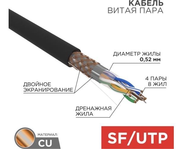 Витая пара REXANT 01-0344 SFTP CAT5e 4 пары 305м 0.51 мм Outdoor