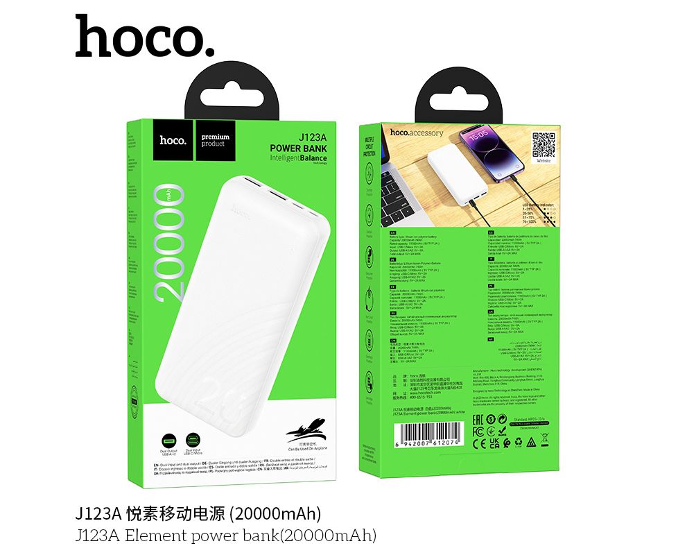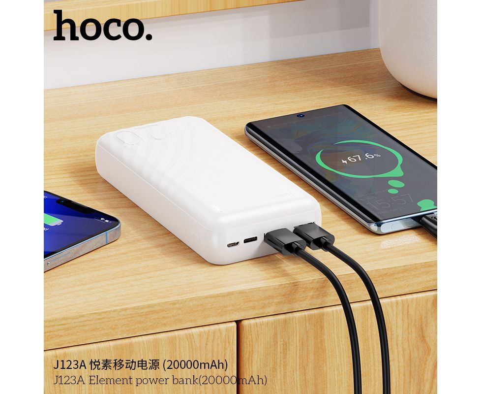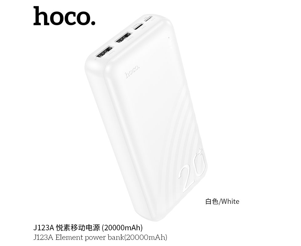Внешний аккумулятор 20000mAh 2USB 2.0A Li-pol с LED дисплеем Hoco Element J123A (White)