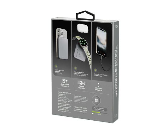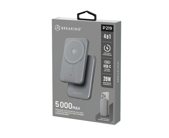 Внешний аккумулятор Breaking P219 4 в 1, USB-C, 5 000 mAh, 3.0A, 20W, Mag•Safe, PD, QC 3.0 (Графит)