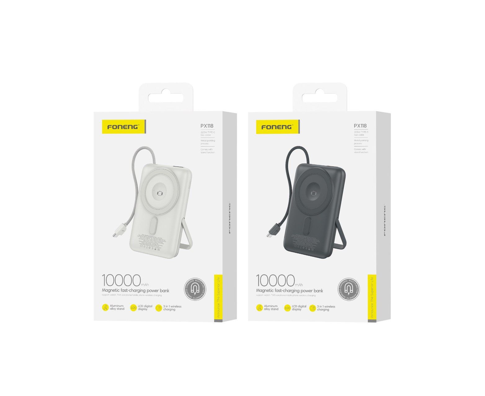 Внешний аккумулятор Foneng PX118 Magnetic 10000 mAh 22.5W , встроенный кабель Type-C (Dark Gray)