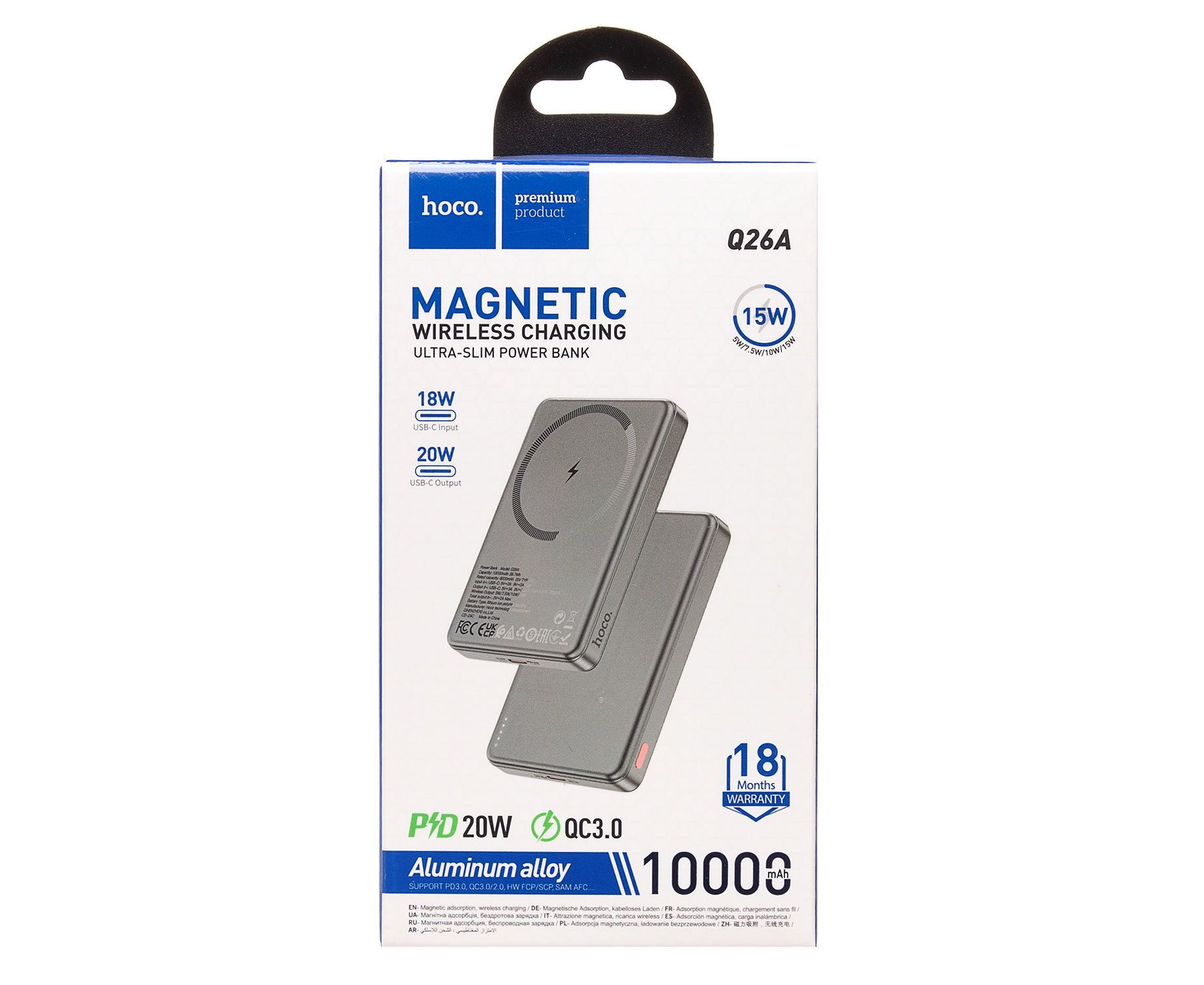 Внешний аккумулятор Hoco Q26a Joy PD20W MagSafe 10000mAh Type-C/Type-C/MagSafe (metal gray)(239599)