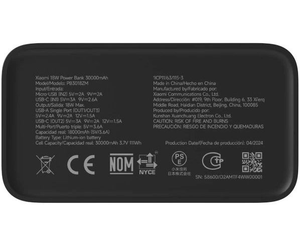 Внешний аккумулятор Xiaomi BHR9126GL 18W 30000mAh GL