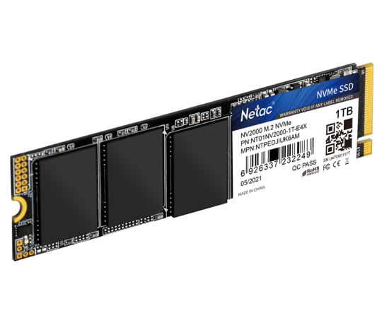 Внутренний SSD Netac 1TB NV2000, PCIe x4, R/W - 2500/2100 MB/s, (M.2), 2280, TLC 3D NAND