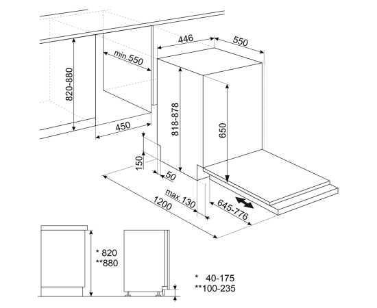 Регулируемые по высоте ножки: 6 см, с 820 до 880 мм