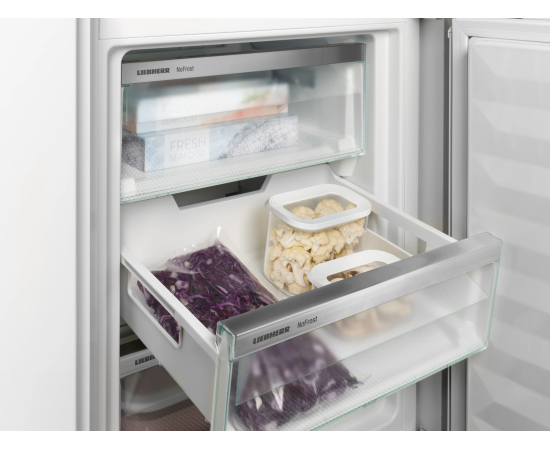 Открывая морозильное отделение, вы хотите видеть замороженные продукты, а никак не лёд или иней. NoFrost защищает морозильную камеру от нежелательного обледенения. Контейнер EasyFresh гарантирует свежесть продуктов в вашем доме, как на рынке. Неупакованные фрукты, овощи или плоды: здесь всё хранится оптимально. Благодаря плотному закрытию контейнера под воздействием продуктов в нём повышается влажность воздуха. Таким образом, продукты остаются свежими долгое время. Благодаря двум полностью раздельным контурам охлаждения DuoCooling обеспечивает отсутствие воздухообмена между холодильным и морозильным отделениями. Продукты питания не засыхают,а запах не передаётся. А это значит: меньше выбрасывать, реже ходить за покупками, больше экономить и получать удовольствие. Реальность прикосновения: сенсорный экран позволяет легко и интуитивно управлять вашим устройством Liebherr. Все функции наглядно расположены на экране. Легким касанием пальца вы можете легко выбрать функции или проверить текущую температуру холодильника.