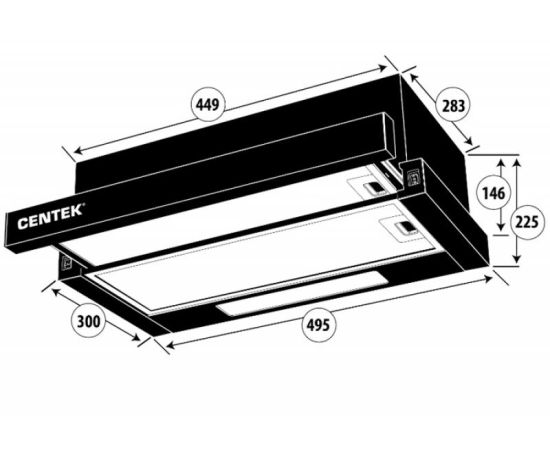 Вытяжка Centek СТ-1840-50 SS (сталь) ширина 50 см. слайдер 600 мЗЈчас, 67 Вт. диаметр 150 мм