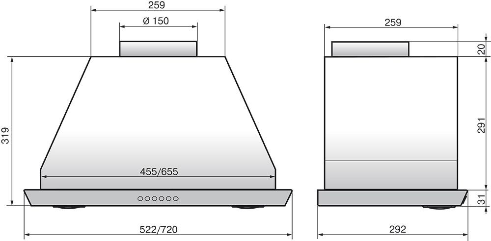 Размеры: 720x319x292мм