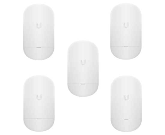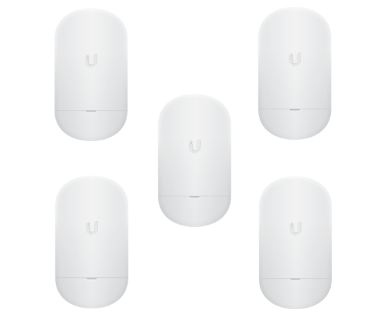 Комплект из 5 компактных абонентских устройств airMAX NanoStation 5AC Loco в диапазоне 5 ГГц, полностью готовых для развёртывания клиентской сети провайдера Интернета и передачи данных на скорости более 450 Мбит/с на расстояния до 10 км и более.