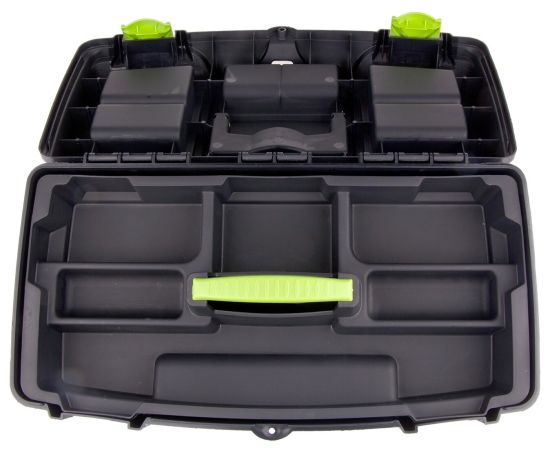 Крышка оснащена встроенными органайзерами для размещения мелких деталей. При переноске максимально допустимый вес составляет 50 кг, а максимальная распределенная нагрузка на крышу составляет 80 кг.