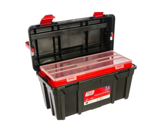 В ящике есть просторное отделение, лоток и органайзер для хранения различных инструментов: сверл, ключей, отверток, молотков и т.д.