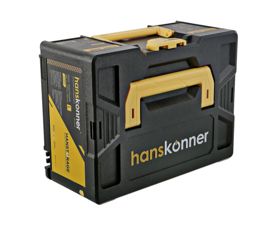 Ящик предназначен для хранения и транспортировки инструмента и инвентаря, может использоваться как отдельно, так и совместно с другими типоразмерами единой системы хранения HANSTORAGE ( S,M,L,XL), образуя при этом единый модуль. К отличительным особенностям можно отнести: HansLock - универсальный поворотный замок, позволяющий без лишних усилий открыть/закрыть ящик или состыковать их между собой; материал изготовления - ударопрочный пластик, обеспечивающий сохранность внутреннего содержимого при этом, допустимая нагрузка на крышку составляет 100кг; ящик имеет 2 фиксируемые рукоятки для возможности его перемещения и легкого извлечения из стеллажа.