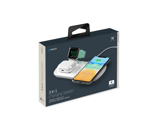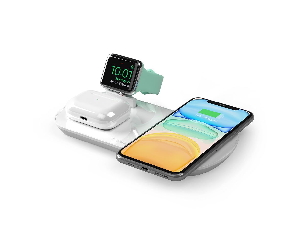Зарядная станция 3 в 1: iPhone, Apple Watch, Airpods, беспроводная, 17,5 Вт, белая, Deppa, 24010
