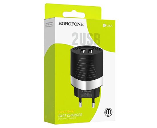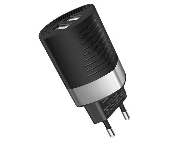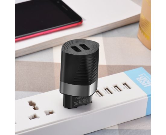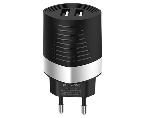Сетевое зарядное устройство BOROFONE BA26A Mighty 2xUSB, 2.4A, черный
